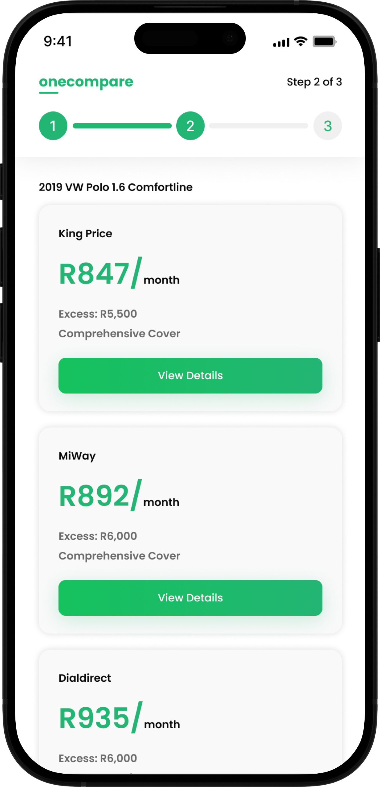 Whether you are currently insured with Discovery Insure, Outsurance, King Price, Santam, Hollard, Momentum Insure, Old Mutual Insure, MiWay, Auto & General, Budget Insurance, 1st for Women, Virseker, Pineapple, Naked Insurance, Dotsure, PMD, Renasa, Oakhurst, Absa Insurance, Standard Bank Insurance, Nedbank Insurance, FNB Car Insurance or Bidvest Insurance. We help you compare your options clearly so you know where you stand.